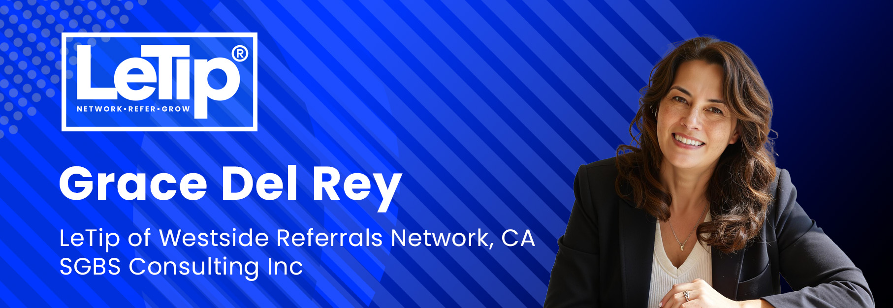 Grace Del Rey has been a member of LeTip since 2009 and currently offers her leadership skills as the Secretary on the Board for LeTip of Westside Referrals Network in Los Angeles, California. She is the founder and CEO of SGBS Consulting, Inc. Grace is a heart-centered business strategist who blends strategic financial systems with soulful business growth. With more than 25 years of experience in finance, she helps her clients increase profit, reduce stress, and lead from a place of clarity and confidence.